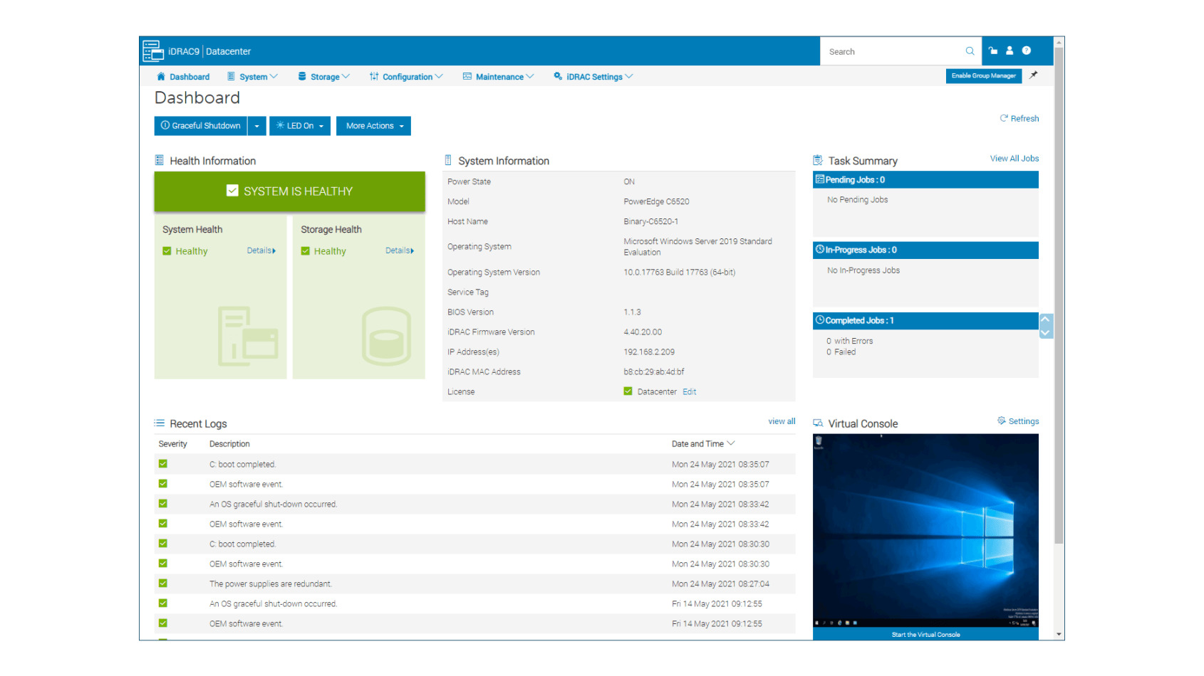 可以使用 Dell EMC 的 OpenManage Enterprise (OME) 集中管理多个服务器和节点。我们在实验室中将最新的 v3.4 作为Hyper-V VM 运行,并使用其发现服务添加我们的 C6520 节点,之后我们可以查看其生命体征、远程控制它并使用 OME 的固件服务来确保它运行最新版本。